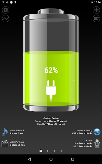 aplikasi baterai untuk android terbaik Battery HD Pro v1.63.04, dengan aplikasi ini kita dapat dengan mudah dan cepat mengetahui status baterai smartphone atau tablet kita, serta sampai berapa lama baterai bertahan jika menggunakan aplikasi tertentu.